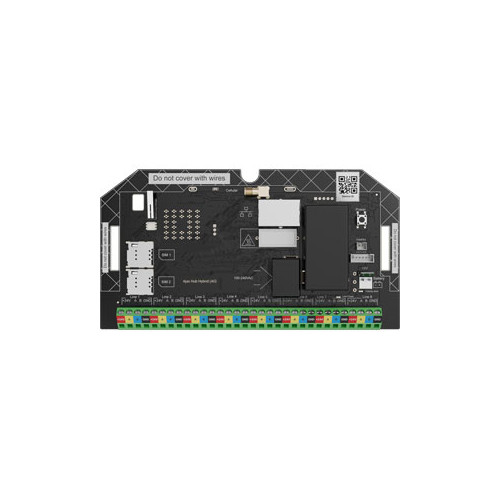 PCB Centralne jedinice (HUB) hibridnog protuprovalnog sustava sa integriranim LAN i dual sim 4G komunikatorom, omogućeno dodavanje i rad do 100 žičanih adresabilnih i/ili bežičnih uređaja, 8 BUS linija, 9 particija, max 50 korisnika. Podržava videoverifikaciju sa Ajax žičanih adresabilnih i bežičnih detektora pokreta sa ugrađenom kamerom.